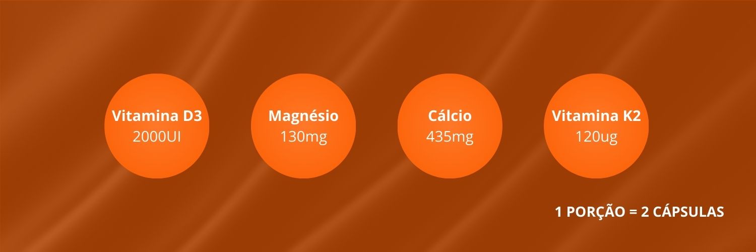 Quais nutrientes estão presentes na fórmula?Colágeno Tipo II Não Desnaturado, Magnésio, Cálcio, Vitamina D3 e Vitamina K2