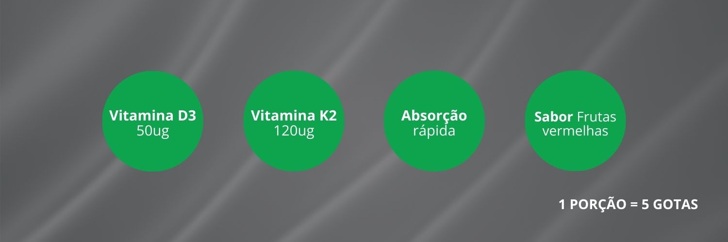 Para que serve o suplemento de Vitamina K2 + D3?Ele auxilia na manutenção dos ossos, contribui para o funcionamento do sistema imune e ajuda no metabolismo do cálcio.