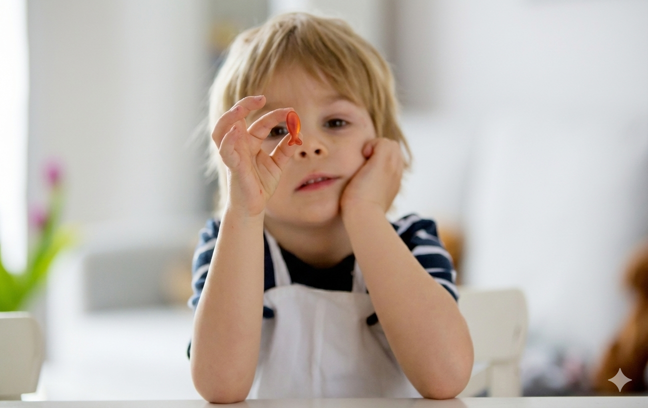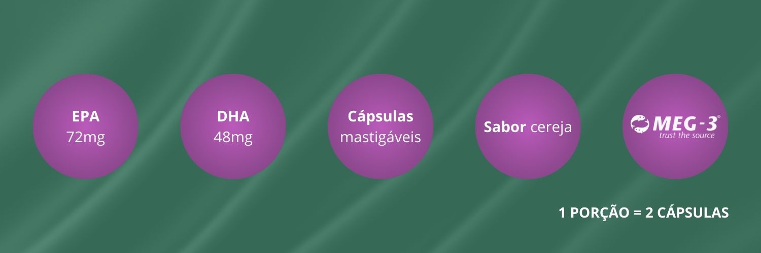Qual é o diferencial em relação aos ômegas tradicionais?Sabor, cor natural e formato mastigável, facilitando o consumo pelas crianças.
